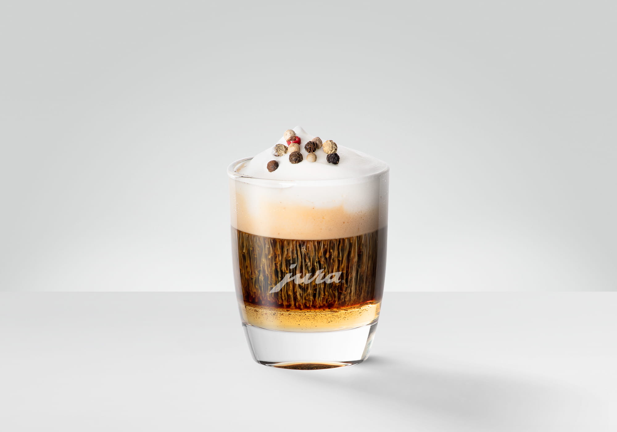 Dekorieren Sie die Kaffeespezialität mit einer Prise Pfeffer. Tipp: Rühren Sie das Getränk vor dem Genuss gut um.