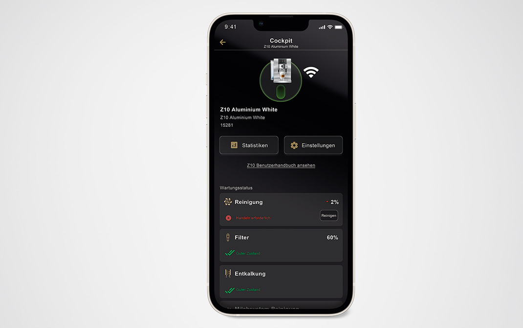 J.O.E.® ist kompatibel mit allen Vollautomaten, die mit Smart Connect oder Wi-Fi Connect ausgestattet sind. Ihr Device verbindet sich dementsprechend über Bluetooth (Smart Connect) oder WLAN (Wi-Fi Connect) mit dem Vollautomaten. Mit Wi-Fi Connect ausgestattete Kaffeevollautomaten von JURA ermöglichen den gleichzeitigen Zugriff von mehreren Devices.