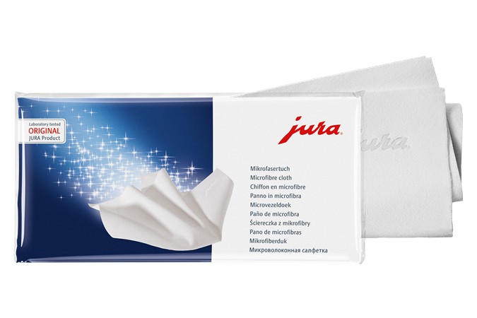 Lästige Fingerabdrücke und eingetrocknete Wasserflecken lassen sich mit einem gewöhnlichen Taschentuch nur schwer von Ihrem JURA Kaffeevollautomaten entfernen. Mit dem speziell für JURA entwickelten Mikrofasertuch wird das Reinigen nun zum Vergnügen. Es eignet sich für Oberflächen wie Chrom, Aluminium, Metall, Holz, Textil und Leder.